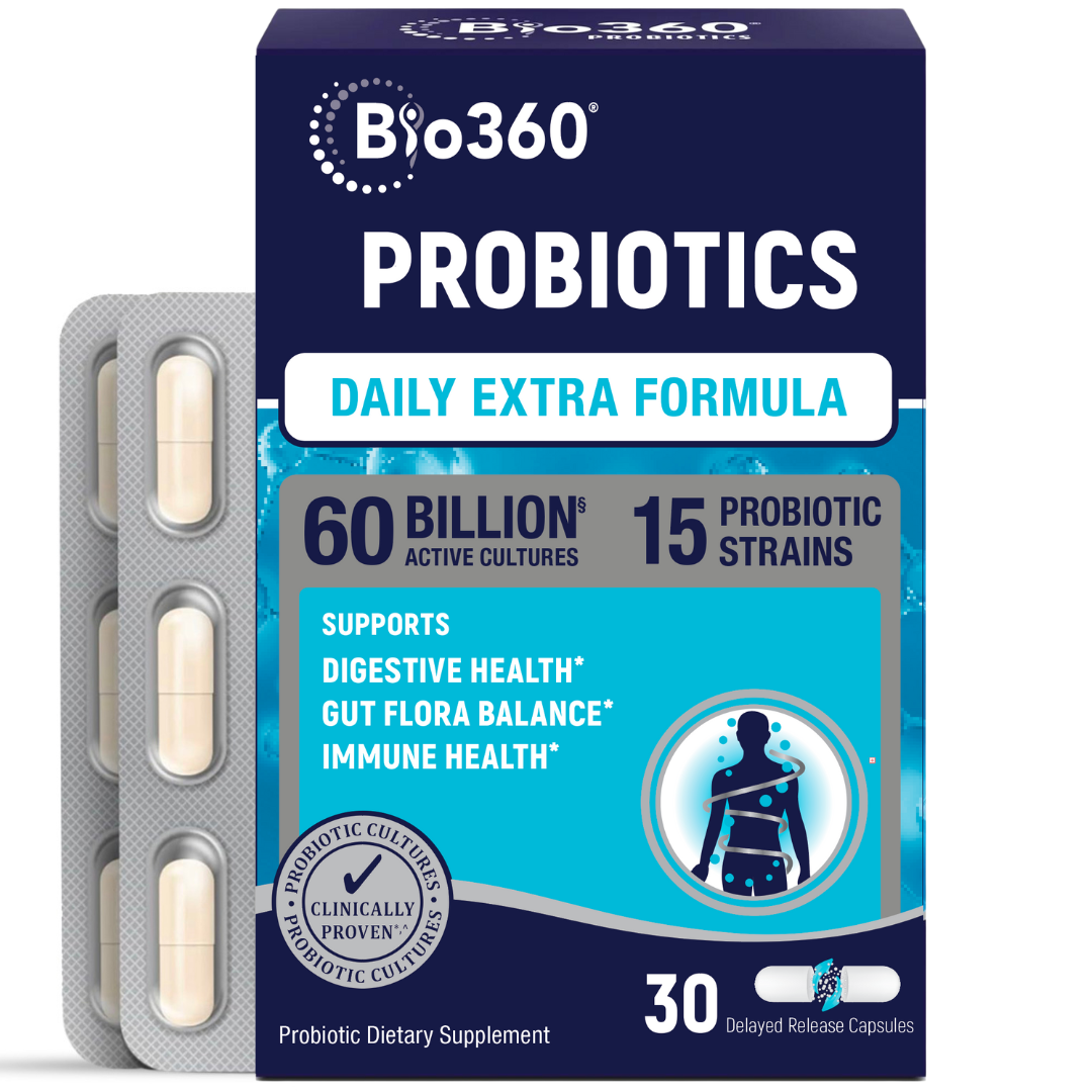 Bio360® takes a 360 degree perspective on your daily health with our line of daily probiotic supplements grounded in science and powered by a proprietary 5-strain blend that is backed by over 700 research studies.